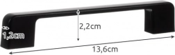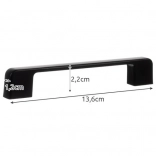 Specifikacije izdelka vključujejo črno mat barvo, aluminijast material in dve montažni luknji z razdaljo 96 mm. Dimenzije so 10,4 x 2,2 x 1,2 cm, kar zagotavlja trdno in stabilno konstrukcijo za dolgo življenjsko dobo.