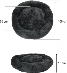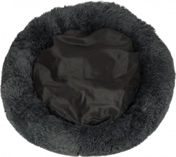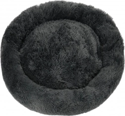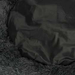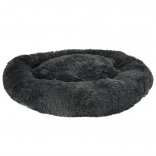 Ta mehkužen, temno siv ležalnik v obliki krofa psom in mačkam nudi toplo zavetje. Nežen plišast zgornji del je prijeten na dotik, udobno polnilo pa blaži pritisk pri ležanju. Povišan rob zagotavlja oporo glave in vratu ter ustvarja občutek varnosti, zato je idealen za ljubljenčke, ki se radi zvijejo v klobčič.