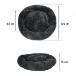 Spodnja stran je opremljena s protizdrsno obdelavo, ki preprečuje neželeno premikanje po tleh. Zaradi premera 100 cm je primeren za srednje velike in večje pse ter tudi za več mačk hkrati. Stilska temno siva barva se zlahka ujema z notranjo opremo.