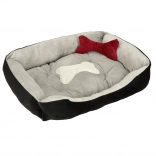 Privoščite svojemu ljubljenčku popolno udobje s tem pravokotnim ležiščem velikosti 60 × 45 cm. Ima mehko oblazinjenje, povišane robove za oporo glave in vratu ter proti zdrsu spodnjo stran, ki ohranja ležišče na mestu. Eleganten črno‑siv dizajn se odlično poda v vsak interier, priložena pa je tudi plišasta igrača v obliki kosti.