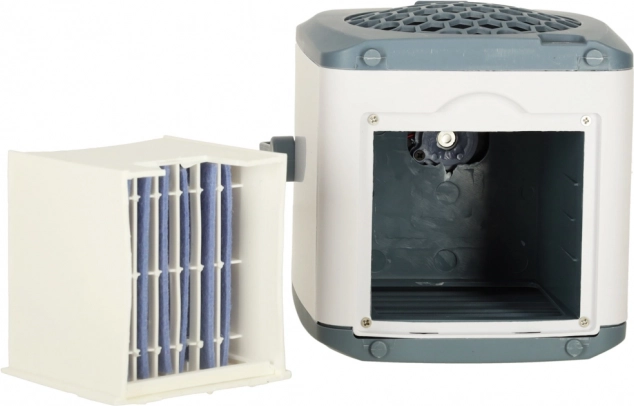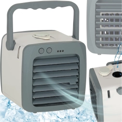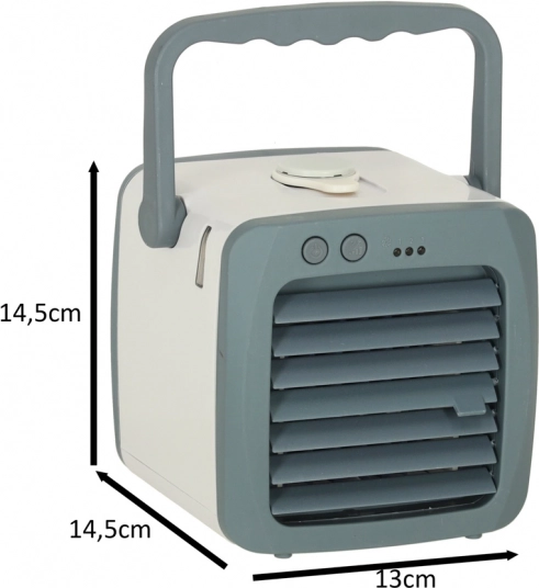 Uživajte v osebnem udobju tudi v vročih dneh. Ta mini USB klimatski aparat uporablja vodo za naravno izhlapevalno hlajenje, ki vlaži in hladi zrak v vaši neposredni okolici. Zahvaljujoč kompaktnim meram in priročnemu ročaju ga zlahka prenesete med pisalno mizo, spalnico ali dnevno sobo.