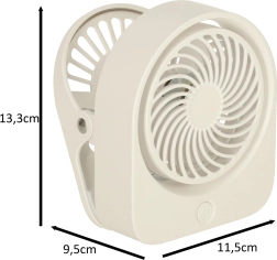 Uživajte v prijetnem hladu kadarkoli in kjerkoli. Ta mini namizni ventilator z močno sponko enostavno namestite na rob mize, polico ali okvir postelje. Premer 11,5 cm in nizka teža zagotavljata odlično prenosljivost, medtem ko tih način delovanja ne moti pri delu, študiju ali spanju.