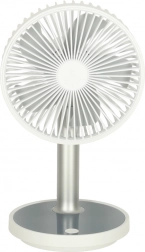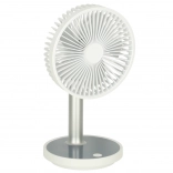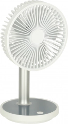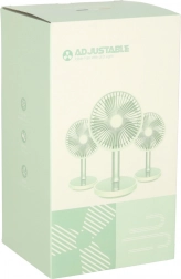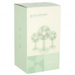 Uživajte v prijetnem hlajenju v vročih dneh. Ta bel namizni ventilator združuje minimalističen dizajn s praktičnimi funkcijami: štiri načine pretoka zraka od nežnega vetriča do močnejše zmogljivosti, tiho delovanje, primerno za spalnico in pisarno, ter LED-osvetlitev podstavka za diskretno nočno svetlobo.