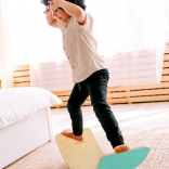 Ravnotežna deska LULILO AJLO je vsestranski pripomoček za aktivno igro in vadbo doma. Zaradi ukrivljene oblike naravno uri stabilnost telesa, krepi jedro (core) in izboljšuje držo. Turkizen filc na spodnji strani doda slog ter hkrati duši hrup in zagotavlja oprijem.