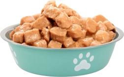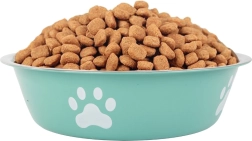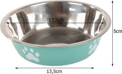 Turkizna skleda s potiskom tačk izgleda odlično in je primerna za pse in mačke za vsakodnevno hranjenje.