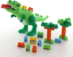 Na hrbtu in repu dinozavra so mesta za pritrditev kock, tako da lahko otrok sam oblikuje, kako dinozaver izgleda. Enostavno odstranjevanje kock iz spodnjega dela omogoča ustvarjanje novega okolja za dinozaver.