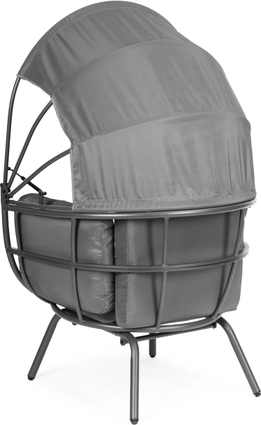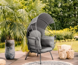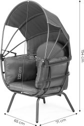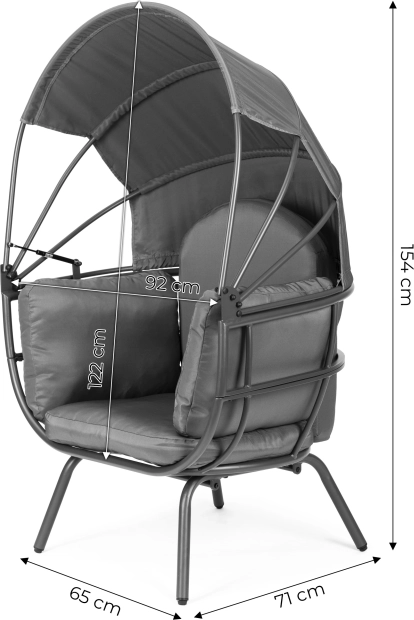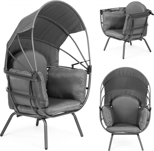 Stabilna in trdna jeklena konstrukcija zagotavlja varnost in udobje. Velika zložljiva strešica nudi prijetno senco v vročih dneh in ščiti pred sunki vetra. Branje, sončenje ali sprostitev na prostem ne bodo nikoli več enaki kot prej.