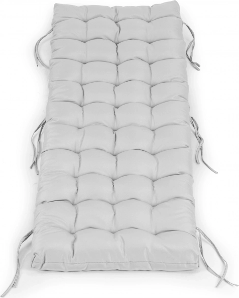 Univerzalna siva blazina za vrtni ležalnik ali stol zagotavlja največje udobje in slog vašemu zunanjemu kotičku. Trpežen material je vodoodporen in odporen na vremenske vplive, zato je idealen za teraso, balkon in vrt. Zahvaljujoč praktičnim pritrdilnim trakovom trdno ostane na mestu in ustreza večini običajnih modelov ležalnikov, stolov in klopi.