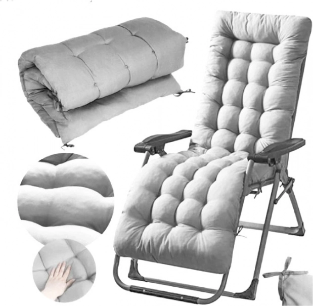 Izboljšajte trenutke sprostitve z udobno blazino, zasnovano za ležalnike, naslanjače, stole in klopi. Skrbno prešitje z 8 dekorativnimi prešivi doda eleganten videz, medtem ko mehko polnilo zagotavlja dolgotrajno udobje pri počitku na soncu ali v senci.