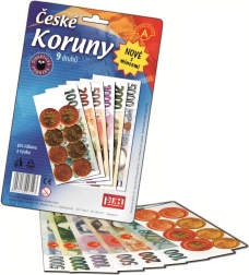 Zabaven komplet igralnega denarja vsebuje 6 vrst barvnih čeških bankovcev in kovance z vrednostmi 10, 20 in 50 Kč. Skupaj vsebuje 149.340 Kč, kar je dvakrat večja količina kot pri konkurenčnih izdelkih. Ta komplet je idealen za otroke, ki se želijo naučiti uporabljati denar, primeren pa je tudi kot učni pripomoček za šolsko izobraževanje.