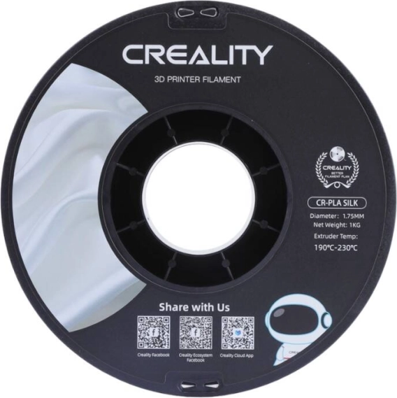 Creality CR‑PLA Silk v beli barvi ustvarja modele z biserno gladko površino brez potrebe po dodatnem poliranju. Zahvaljujoč skrbnemu navitju je tiskanje brez zapletanja in s konstantnim podajanjem materiala. Idealno za figurice, dekoracije, darila in nakit, kjer boste cenili vrhunski videz in enostavno obdelavo.