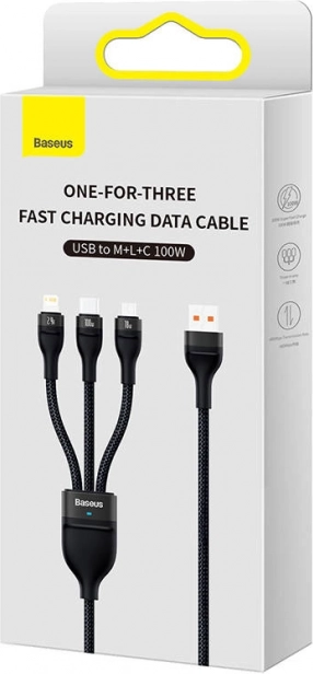 USB kabel Baseus Flash Series 3v1 je idealen za tiste, ki potrebujejo hitro, varno in učinkovito polnjenje več naprav hkrati. Zahvaljujoč svoji univerzalnosti lahko enostavno polnite pametne telefone, tablice, prenosne polnilnike in druge naprave s priključki USB-C, Micro USB in Lightning.