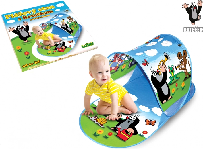 Uživajte v udobju in zabavi z ljubkim plažnim šotorom z motivom KRTEK. Zaradi lahke konstrukcije in preprostega sistema zlaganja je idealen za otroke doma in na prostem. Odlično služi kot zavetje pred soncem na plaži ali kot igralni kotiček na vrtu.