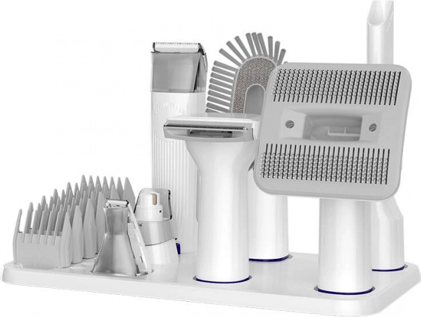 V paketu so natančen prirezovalnik dlake med blazinicami tačk, brusilnik za kremplje in več vrst nastavkov za različno dolžino ter tip dlake. Zahvaljujoč prostorni 1,5‑litrski posodi in praktični shranjevalni opremi je vzdrževanje preprosto in higienično – idealna rešitev za vsakodnevno nego doma.
