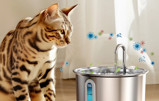Zaradi uporabe nerjavnega jekla 316 ostaja voda neonesnažena in fontana se enostavno čisti. Vsi deli so lahko pomiti v pomivalnem stroju, kar olajša vzdrževanje. Poleg tega lahko spremljate raven vode zahvaljujoč prozorni odprtini z LED osvetlitvijo.