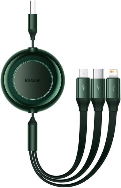 Kabel Baseus 3-v-1 je idealna rešitev za vse, ki potrebujejo polnjenje naprav različnih znamk. Zaradi vlečne zasnove lahko preprosto prilagodite dolžino kabla od 0,3 do 1,1 metra. Ta kabel je opremljen s tremi konektorji – micro USB, USB-C in Lightning – kar vam omogoča polnjenje več naprav sočasno.