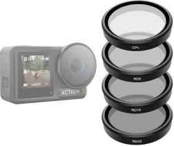 Namestitev je hitra in brez zapletov, zato lahko prožno reagirate na spreminjajoče se svetlobne razmere. Filter CPL zmanjšuje polarizirano svetlobo ter izboljša kontrast neba in prosojnost vode. Filtri ND8/ND16/ND32 zmanjšujejo količino vpadne svetlobe, olajšajo delo z daljšimi časi zaklopa in zagotavljajo tekoč, filmski videz videa ter učinkovito zameglitev gibanja.