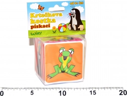 Ta plastična piščajoča kocka z motivi KRTEČKA je idealna prva igrača za dojenčke od rojstva dalje. Zaradi mehkega, varnega materiala jo malčke ročice zlahka primejo, raznolike barve in piskanje pa razvijajo vid, sluh in fino motoriko.