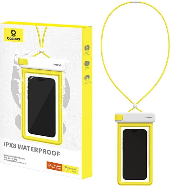 Odpravite se k morju, na bazen ali v dež brez skrbi za svoj pametni telefon. Ohišje BASEUS DeepDive združuje štirislojno tesnjenje z zaklepnim mehanizmom, zato bo vaša naprava zaščitena tudi pri popolni potopitvi v skladu s standardom IPX8. Prozorna sprednja stran ohranja vrhunsko kakovost fotografij in videov.