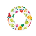 Ta otroški napihljivi obroč je odlična izbira za prve vodne dogodivščine. Lahka konstrukcija in trpežen PVC material zagotavljata stabilnost in udobje pri plavanju in igri v vodi. Veseli motivi ribic, morskih bitij, sladoledov in sadja bodo razveselili vsakega otroka in popestrili poletne dni.
