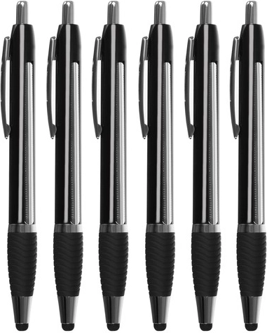 Komplet 6 krogličnih pisal z izvlečno kartico za zapiske in stylusom, črna in modra
