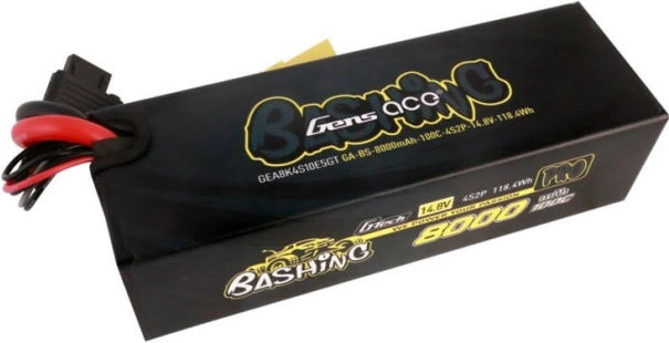 Akumulator Gens Ace Bashing je namenjen profesionalnim aplikacijam v RC vozilih. Njegova kapaciteta 8000mAh zagotavlja dolgo vožnjo, napetost 14,8V pa nudi stabilno in učinkovito zmogljivost, idealno za zahtevne uporabe.