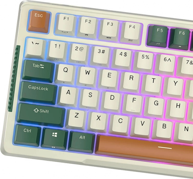 Royal Kludge RKH81 združuje kompaktno 75‑odstotno postavitev s pametno opremo za vsakodnevno produktivnost in igranje. Dobite 3 načine povezave (USB‑C, 2,4 GHz, Bluetooth do 3 napravam), hotswap podnožje za enostavno zamenjavo stikal in RGB osvetlitev s 14 načini. Robustna konstrukcija zmanjšuje hrup, nedrseče nogice pa zagotavljajo stabilnost na mizi.