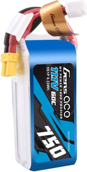 Uživajte v zanesljivi zmogljivosti z baterijo Gens Ace 3S 11,1 V 750 mAh. Visoka obremenitvena karakteristika 60C zagotavlja takojšen odziv in stabilno napetost tudi pri dinamičnih manevrih. Priključek XT30 prinaša varno in trdno povezavo, medtem ko balans priključek JST‑XH olajša natančno izenačevanje členkov.
