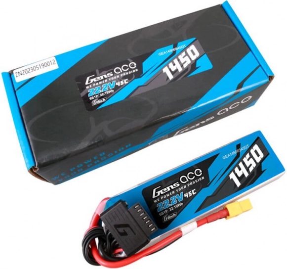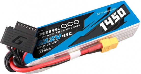 Iščete akumulator, ki obvlada zahtevne manevre in hitre spremembe obremenitve? Gens Ace G‑Tech 6S s kapaciteto 1450 mAh in napetostjo 22,2 V nudi zanesljivo zmogljivost in dolgo vzdržljivost. Obremenitev do 45C omogoča bliskovito dobavo energije, zato imate rezervo za strme vzpone, akrobacije in dirkalne lete.