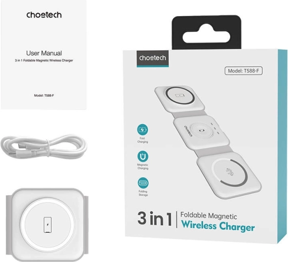 Učinkovito polnjenje naprav: Choetech 3v1 vam omogoča, da pozabite na zapletene kable. Brezžično polnite vaš iPhone, Apple Watch in AirPods hkrati ter ohranite red na mizi.
