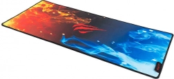 Podloga izstopa z izrazitim dizajnom v obliki rdečih in modrih plamenov, ki vašemu gaming setupu dodajo slog.