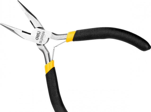 Kompaktne igelaste klešče DELI dolžine 125 mm so odlična izbira za delavnico in domača popravila. Zahvaljujoč ozkim, dolgim čeljustim zlahka dosežete tesne prostore, varno primete majhne dele in natančno oblikujete vodnike. Ohišje iz kakovostnega ogljičnega jekla zagotavlja visoko vzdržljivost in zanesljivost pri vsakodnevni uporabi.