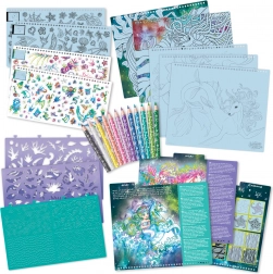 V paketu najdete pestro paleto likovnih pripomočkov in dodatkov, s katerimi lahko otroci prekrivajo s šablonami, barvajo, rišejo in lepijo. S preprostimi navodili po korakih hitro osvojijo nove tehnike in ustvarijo čudovite slike, navdihnjene z magičnim svetom živali.