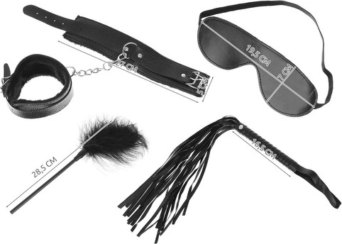 Komplet vsebuje vse potrebno za različne tipe BDSM iger, od nežnega draženja do čutnih borb.