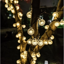 Sončna svetlobna veriga s toplo rumeno svetlobo je idealen dodatek za vrtno osvetlitev. Ponuja vintage polistirenske krogle, ki odlično razpršijo svetlobo.