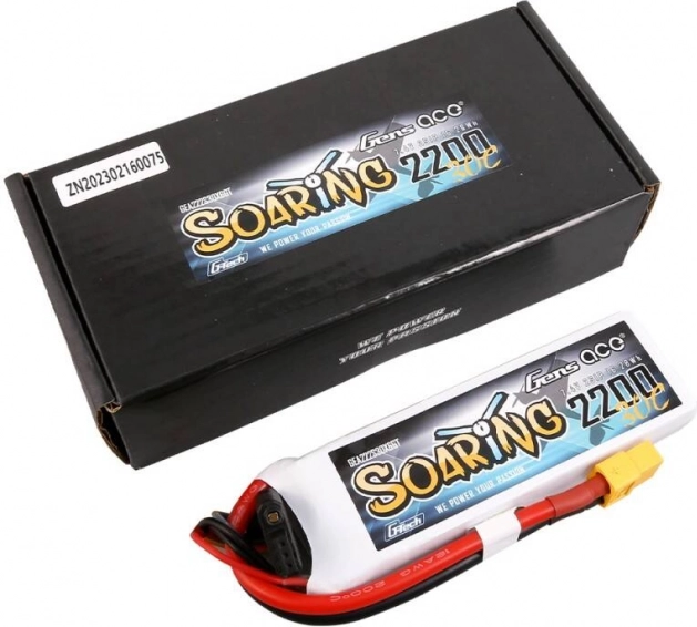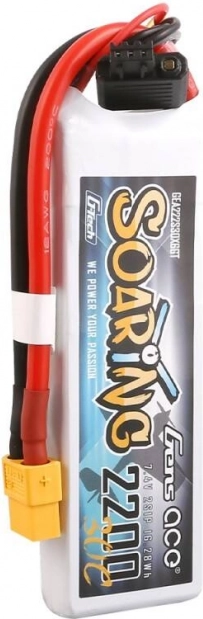 Baterija Gens Ace Soaring s kapaciteto 2200mAh in napetostjo 7,4V je odlična izbira za modelarje, ki potrebujejo zanesljiv in dolgotrajen vir energije. Zaradi nizke mase in kompaktnih mer je idealna za različne vrste daljinsko vodenih modelov.