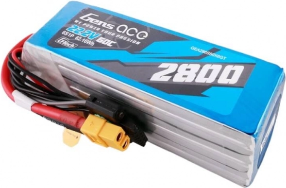 Baterija Gens Ace s kapaciteto 2800 mAh in napetostjo 22,2 V je zasnovana za zagotavljanje odlične zmogljivosti v intenzivnih letalnih ali voznih pogojih. Zahvaljujoč robustnemu konektorju XT60 nudi varen in stabilen priklop, kar je ključno za optimalno delovanje RC naprav.
