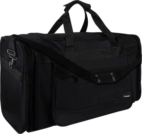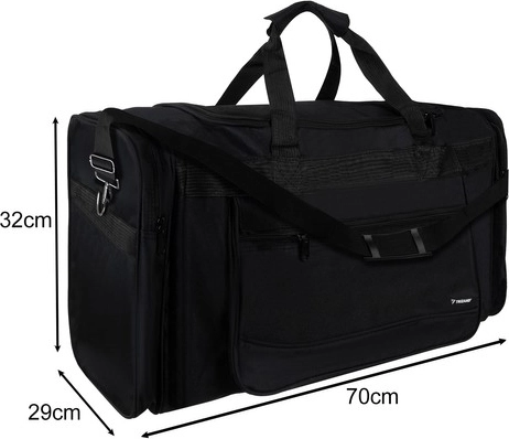 Organizacija je preprosta: glavna komora sprejme oblačila in opremo, sprednji žep na zadrgo je idealen za drobnarije in dokumente, dva velika stranska žepa omogočata hiter dostop do obutve ali dodatkov. Nastavljiv ramenski trak z blazinico razbremeni ramo tudi pri težjem tovoru.