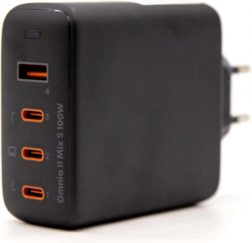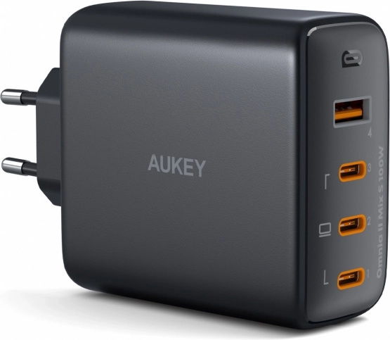 Aukey Omnia II je zmogljiv 100W polnilec s tehnologijo GaN, ki podpira Power Delivery 3.0 in Quick Charge. Zahvaljujoč štirim USB priključkom (3x USB-C in 1x USB-A) lahko hkrati polni do štiri naprave.
