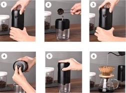 S pomočjo stopenjske regulacije grobosti nastavite mletje natančno glede na svoj način priprave – od finega za espresso do grobejšega za french press. Napajanje prek USB‑C omogoča uporabo prenosnika, powerbanke ali polnilnika, zato si lahko svežo kavo pripravite doma, v pisarni in na poti.