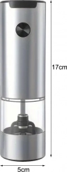 Ta električni mlinček za začimbe prinaša udobje in učinkovitost v vašo kuhinjo. Opremljen z zmogljivim in tihim motorjem, lahko hitro in učinkovito melje različne vrste začimb, od soli in popra do eksotičnih mešanic.