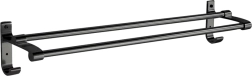 Eleganten dvojni nosilec za brisače je idealna izbira za moderne in klasične kopalnice. Dve vzporedni palici zagotavljata dovolj prostora za sušenje in organizacijo brisač, medtem ko stranski kavlji ponujajo dodatno mesto za dodatke. Trdna kovinska konstrukcija v črni izvedbi zagotavlja dolgo življenjsko dobo in enostavno vzdrževanje.
