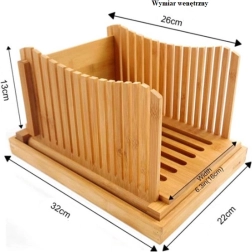 Bambusov rezalnik kruha vam omogoča enakomerno in varno rezanje rezin kruha, baget, testa ipd. Ni vam treba skrbeti zaradi drobtin na pultu, saj ima pladenj, na katerem se drobtine zbirajo. Drobtine lahko preprosto stresete iz pladnja. Kompakten rezalnik kruha ne zavzame veliko prostora, zato prihranite dragocen prostor na kuhinjskem pultu. Rezalnik je izdelan iz kakovostnega bambusovega lesa, ki je varen za stik z živili. Rezalnik je posebej zasnovan tako, da vanj lahko spravite velik kuharski nož.