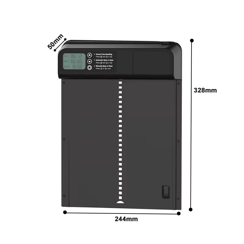 Omogoča načrtovanje odpiranja in zapiranja vratc ob določenih urah, kar zagotavlja rednost in varnost.