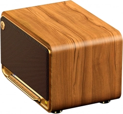 Elegantna lesena izvedba z retro pridihom, 12‑mm MDF ohišje in skrit ročaj za udobno nošenje. Do 12 ur delovanja z enim polnjenjem.