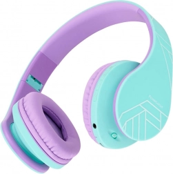 Slušalke lahko povežete brezžično prek Bluetooth 5.3 ali s klasičnim 3,5‑mm kablom. Vgrajeni mikrofon olajša klice z družino, predvajanje z microSD kartice pa omogoča poslušanje najljubših vsebin brez telefona. Nastavljiv omejevalnik glasnosti ščiti otroški sluh, zložljiva zasnova s torbico pa olajša potovanja.