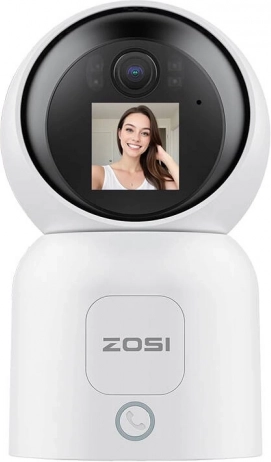 Pametne funkcije za vsakdanje udobje – kamera podpira dvosmerno komunikacijo zahvaljujoč vgrajenemu mikrofonu in zvočniku, samodejno sledi osebam in se po akciji vrne v začetni položaj. Na ohišju je 1,44" zaslon, ki prikazuje datum, čas in vreme. V aplikaciji ZOSI Smart (Android/iOS) in programski opremi AVSS (PC/Mac) spremljate sliko v živo, nastavite cone zasebnosti (do 5) in vrste obvestil.