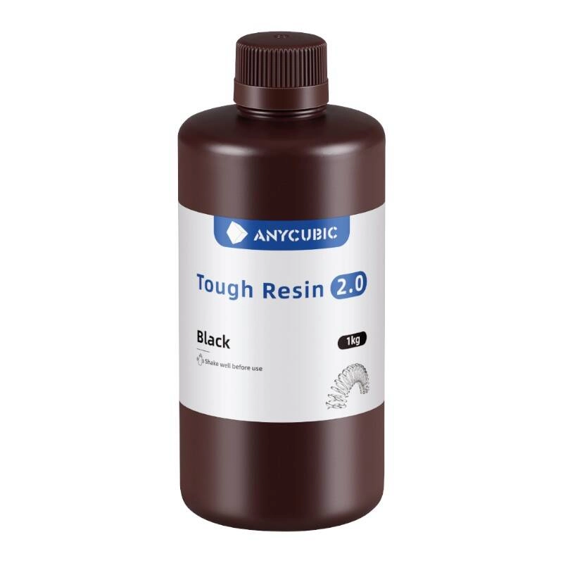 Anycubic Tough Resin 2.0 črna je posebej razvita smola za 3D tisk z visoko trdnostjo. Njena sestava zagotavlja prožnost in odpornost proti pokanju, kar omogoča izdelavo podrobnih modelov. Smola je manj nagnjena k poškodbam, tudi po padcu, in je združljiva z večino LCD 3D-tiskalnikov. Uporabljene sestavine so okolju prijazne in ne oddajajo intenzivnih vonjav.