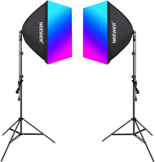 Z aplikacijo NEEWER lahko pametno upravljate osvetlitev na razdalji do 15 metrov prek Bluetootha. Uporabniki imajo na voljo 9 načinov upravljanja za nastavitev svetlobe po svojih željah. Trpežni softboxi zagotavljajo enakomerno osvetlitev, medtem ko nastavljivo kovinsko stojalo zagotavlja stabilno postavitev luči.