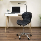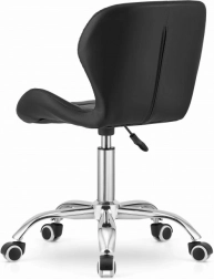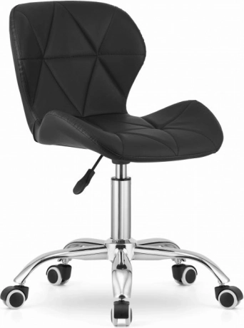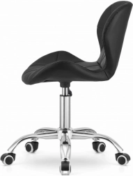 Ta sodoben pisarniški stol se odlično poda v otroško sobo, atelje, pisarno ali recepcijo. Oblazinjenje iz trpežnega eko usnja z diskretnimi šivi deluje elegantno, enostavno se čisti in dolgoročno ohranja videz. Petkraka kromirana zvezda z gumiranimi kolesi zagotavlja stabilnost ter nežen, tih pomik po tleh.